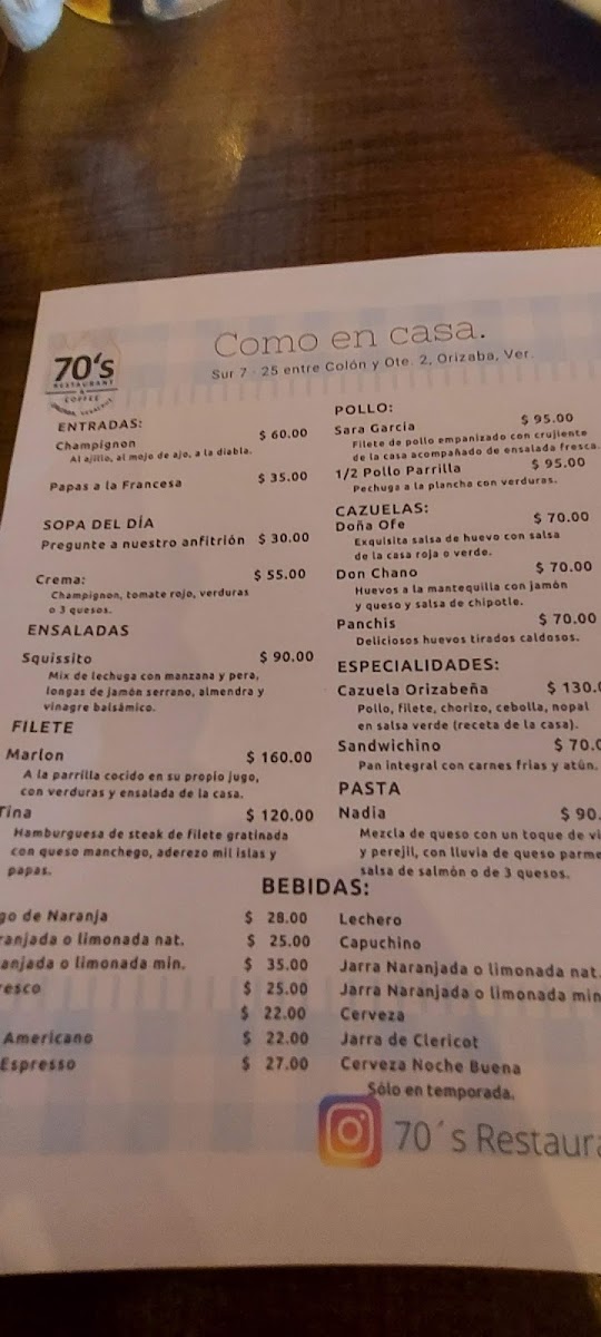 Welcome to 70's Restaurant & Coffee, a delightful haven nestled in the heart of Orizaba, Mexico. This charming eatery offers a menu that is a celebration of traditional flavors with a modern twist. Customers rave about the scrumptious chilaquiles and enchiladas, each dish brimming with authentic taste and made with the freshest ingredients. The accompanying homemade jam and fresh fruit add a special touch to your breakfast experience.
